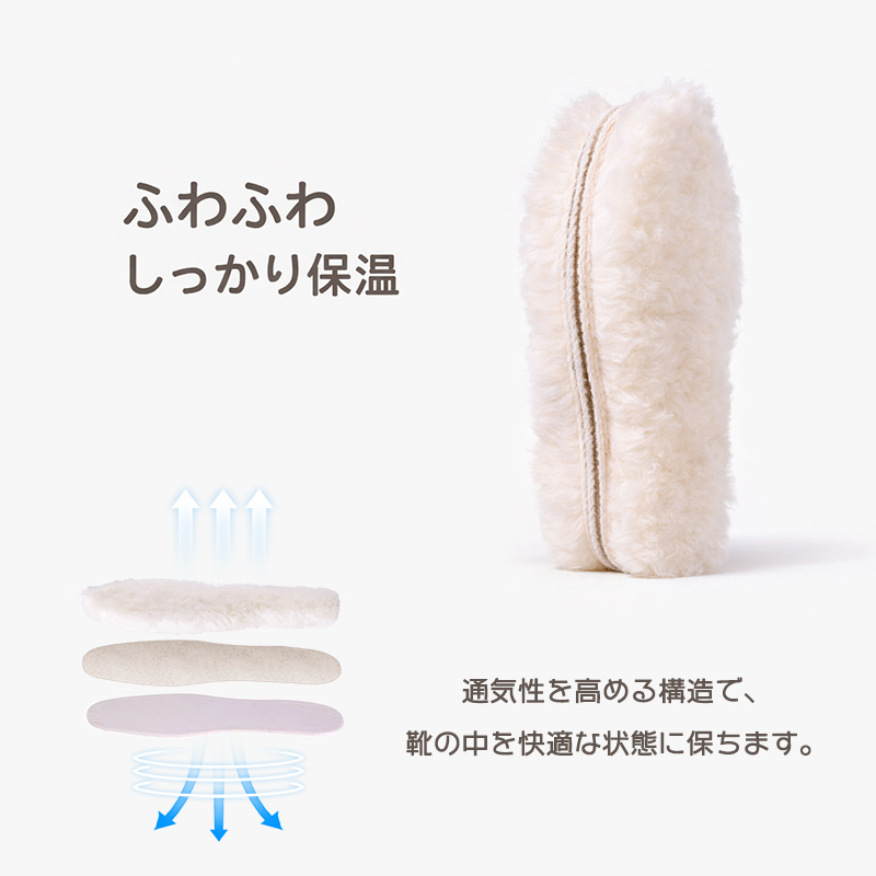 ウールインソール 天然 中敷き あったか 保温 防寒 羊毛100% もこもこ ふわふわ ムートン ブーツ スニーカー ウール シープスキン ボア 男女兼用 冬用