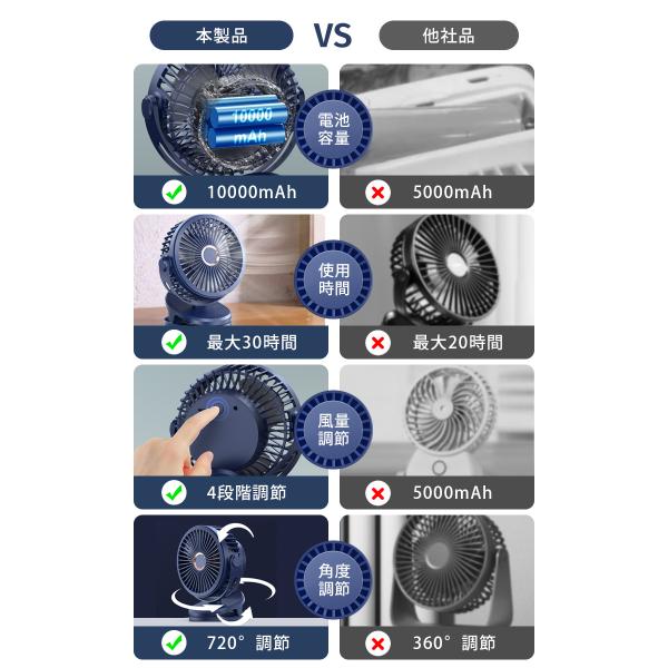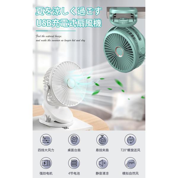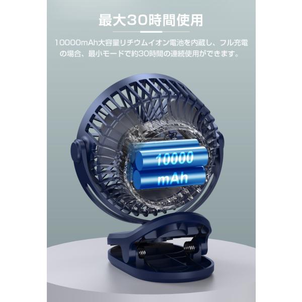 【10000mAh大容量】扇風機 クリップ 卓上 ベビーカー 静音 小型 おしゃれ USB オフィス クリップ式扇風機 2022 卓上扇風機 充電式 4段階風量 30H使用 暑さ対策