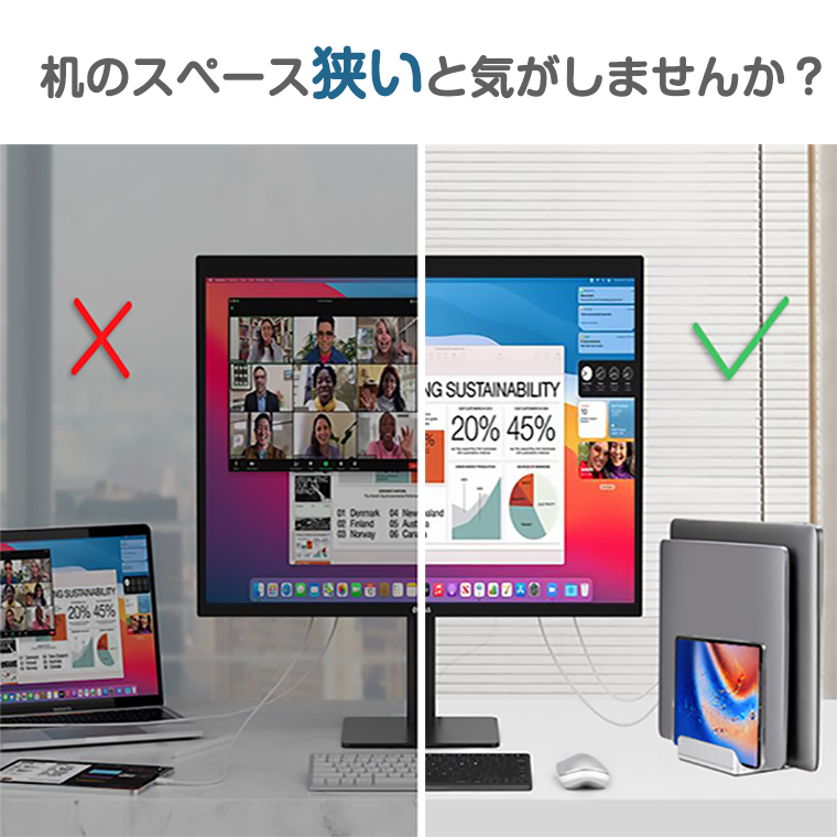 縦置きスタンド スッキリ収納 在宅勤務 スペースを節約