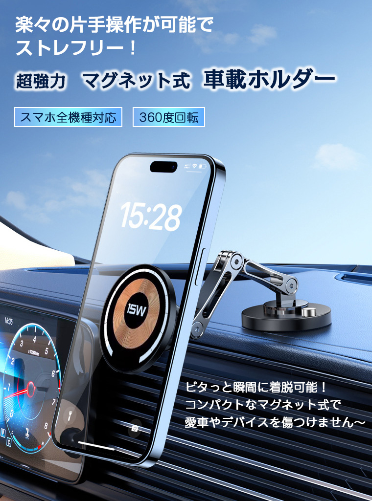 360°回転 車載スマホホルダー MagSafe 15w 急速充電
