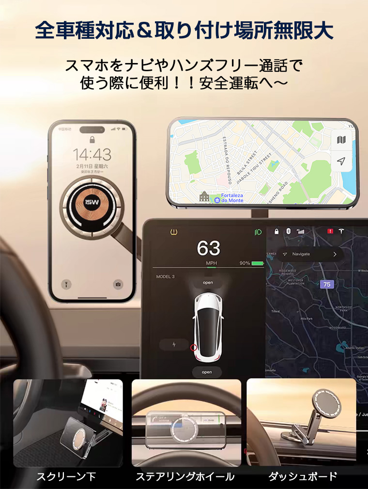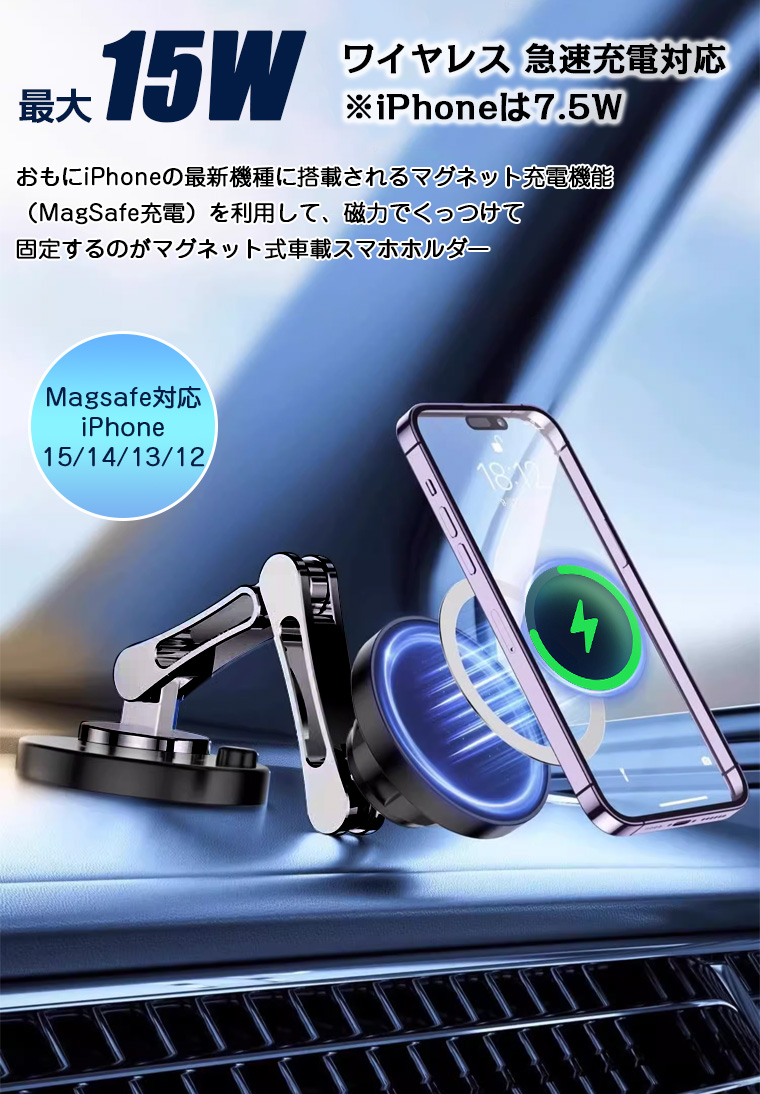 スマホホルダー 車載 マグネット iphone ホルダー magsafe 車載ホルダー 充電 15w スマホホルダー車 車載スマホホルダー MagSafe スタンド 充電 強力