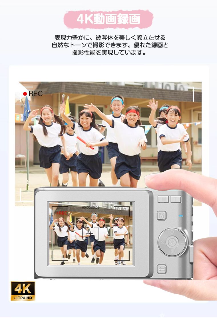 進化版★5000万画素・4K動画撮影 デジタルカメラ かわいい カメラ 子供 子供用 トイカメラ デジカメ 自撮り 小型軽量 16倍ズーム ビデオカメラ スマホ 転送