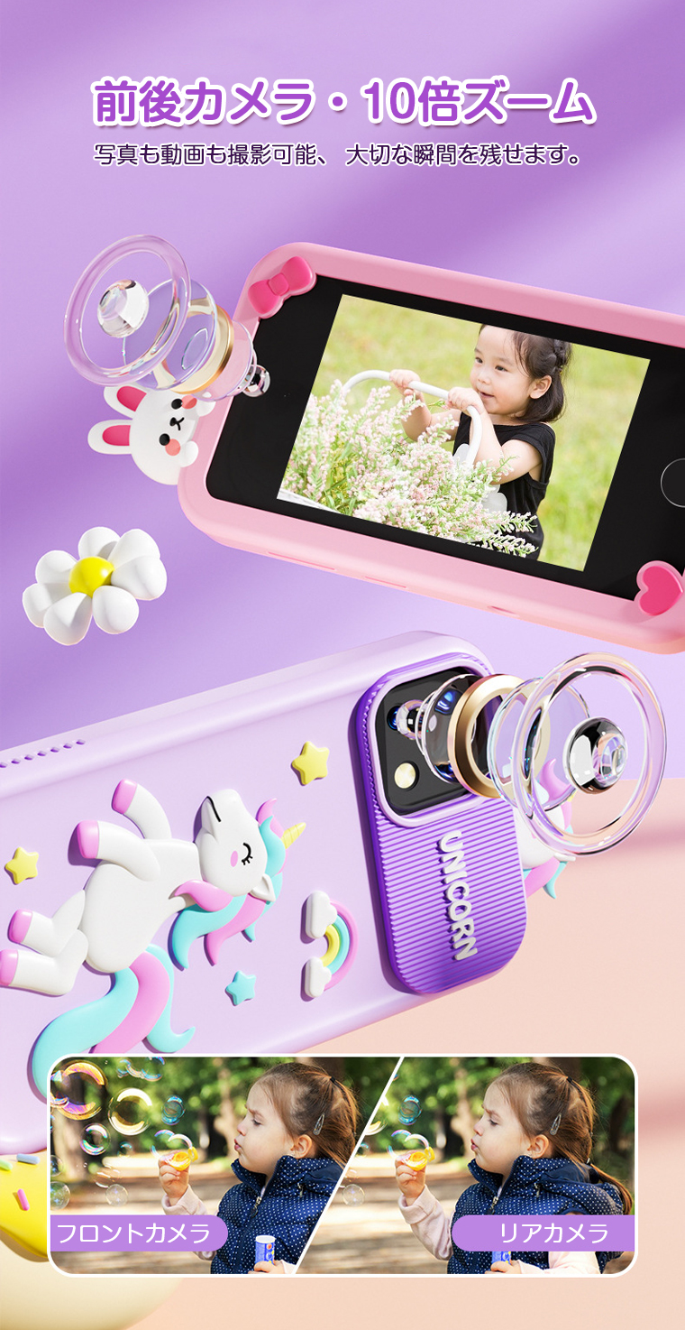 【多機能★自撮り可能】キッズスマホ おもちゃ 子供用 子ども スマホ スマートフォン 前後カメラ トイカメラ デジタルカメラ 自撮り 知育 英語学習 知育ゲーム