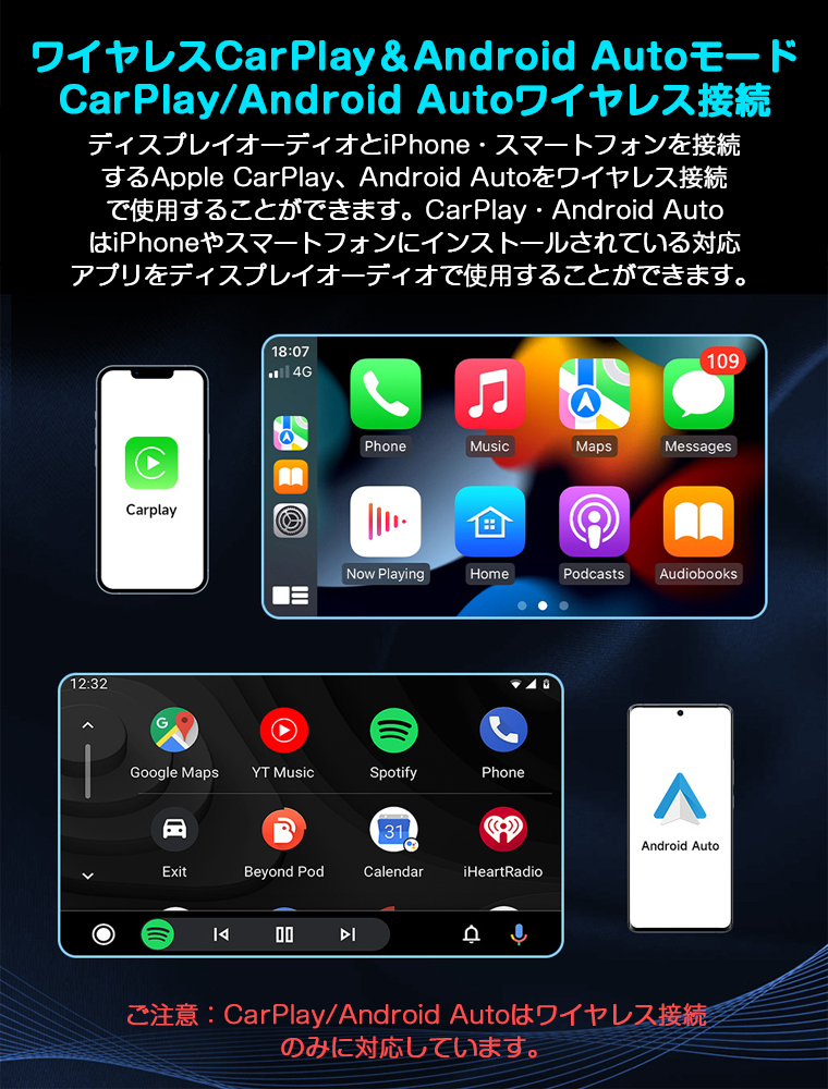 【ワイヤレスCarplay/Android Auto対応】