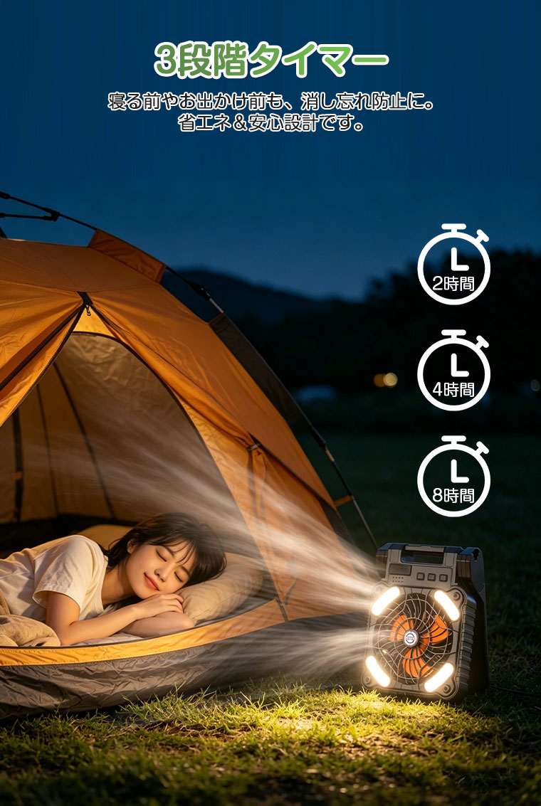 【3段階タイマー&電量表示】