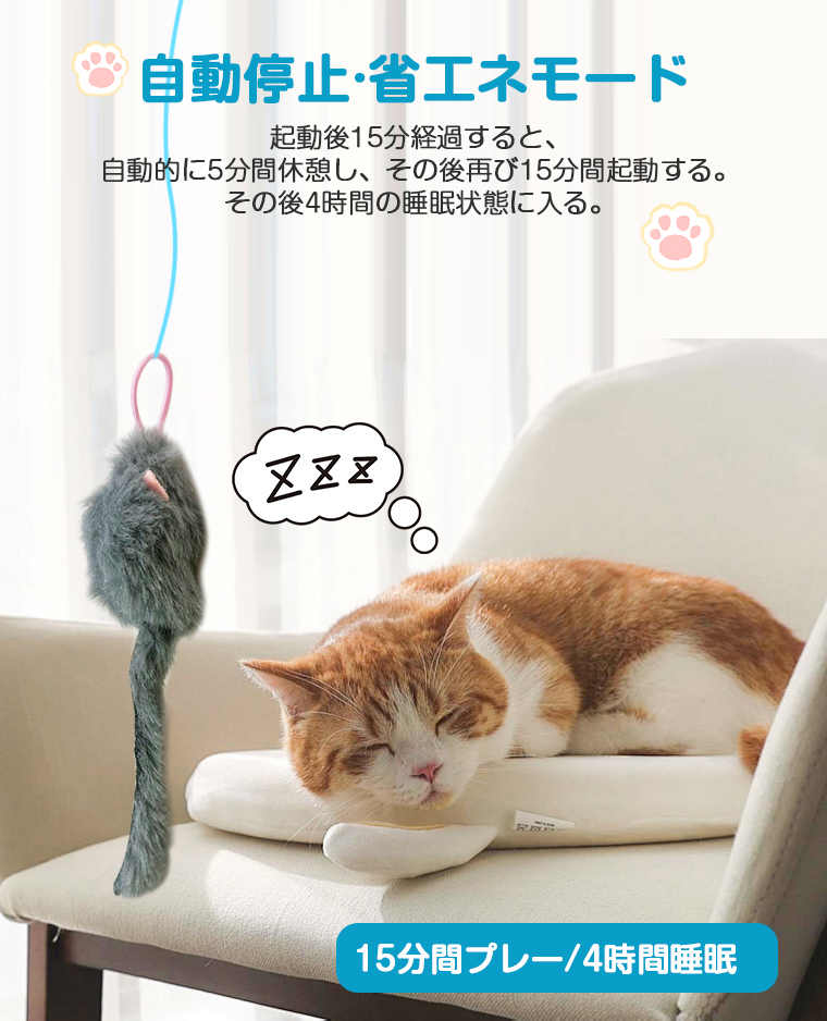直感的な操作で複雑な設定は不要、ワンタッチで猫の遊び心を刺激します。