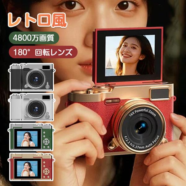 【180回転レンズ・前後カメラ】デジタルカメラ 自撮り トイカメラ 子供 大人 子供用 デジカメ レトロ キッズカメラ レトロカメラ 4800万画質 1080P動画撮影