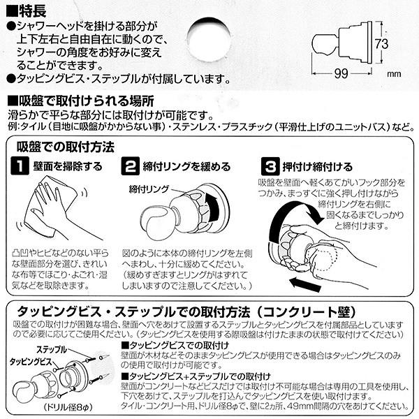 シャワーフック「吸盤式シャワーフック」(ホワイト)【角度調節自由自在シャワー フック 水栓部品 シャワー部品 シャワーホルダー】
