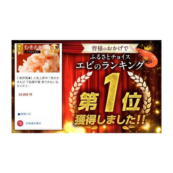 ふるさと納税 エビ 北海道 札幌市 カテゴリーRank《1位獲得 》 累計150,000件突破 彡人気上昇中 背ワタなし 特大むきえび 下処理不要 高評価 5Lサイズ 1.7kg …