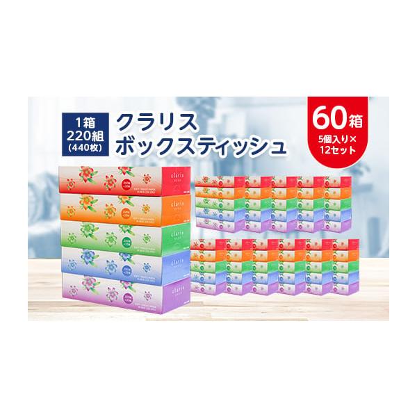 ふるさと納税 雑貨・日用品 栃木県 小山市 クラリスボックスティッシュ60箱(1箱220組(440枚))(5個入り×12セット) 1256759