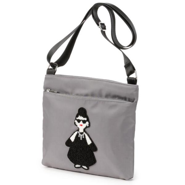 [メール便対応] ハッピーフェイス レディエマ スクエアショルダーバッグ グレー・ブラック・ブラックロゴ柄(斜め掛け ショルダー付き ナイロン 軽量)