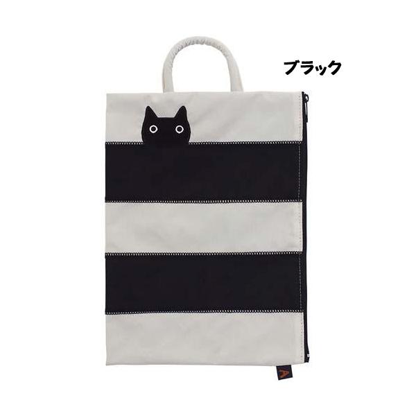 [メール便対応]ATSUKO MATANO(マタノアツコ) ボーダー猫 ポーチ ひょっこり黒猫(ミニバッグ バッグインバッグ )【La MERISE/ら・むりーず】