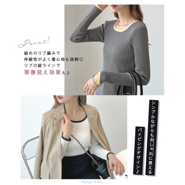 配色パイピングが1枚でも様になるリブニットが新登場!