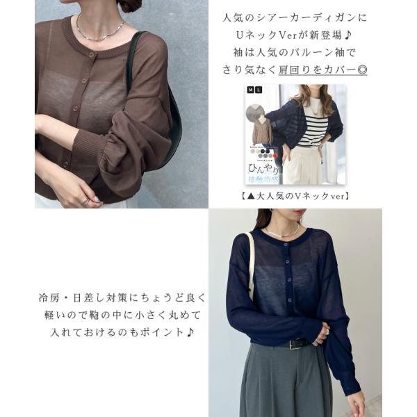 カーディガン 羽織 シアー 前後2way 冷房対策 日焼け対策 レーヨン 接触冷感 Uネック 無地 洗濯OK 速乾 シースルー サマーニット コンパクトシアーカーディガン