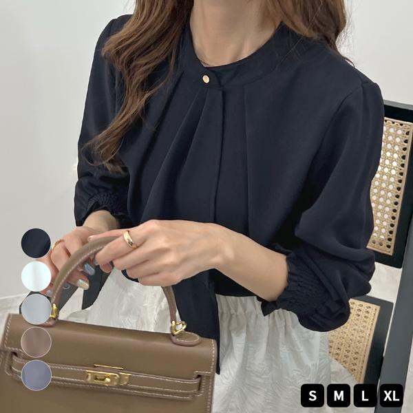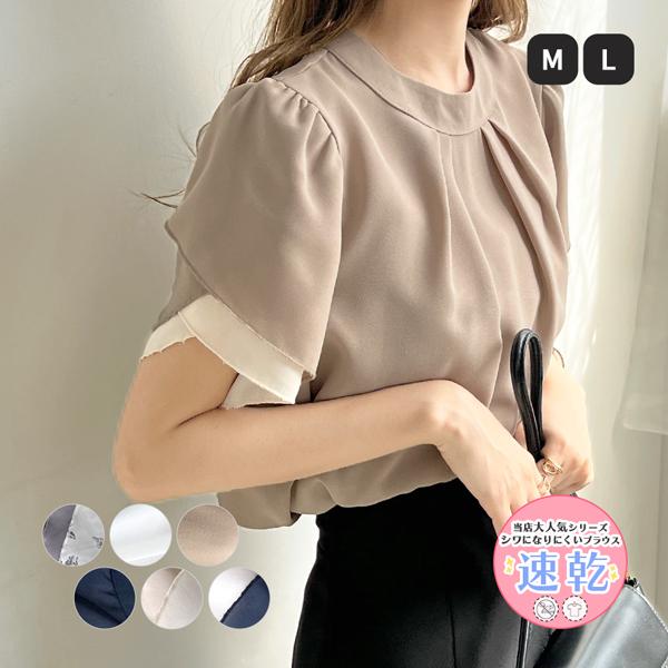 トップス ブラウス レディース 半袖 30代 40代 パワショル オフィスカジュアル きれいめ 上品 韓国 ファッション / チューリップ袖レイヤー風パワショルブラウス