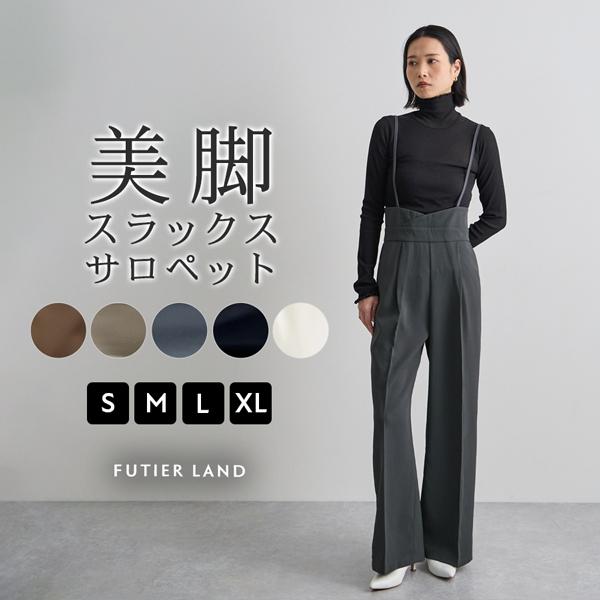 パンツ スラックス ハイウエスト サロペット タック ワイドパンツ レディース 上品 きれいめ オフィスカジュアル / ハイウエストキャミサロペットスラックス