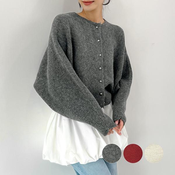 カーディガン ニット モヘアニット バルーンスリーブ ドルマン ゆったり ドロップショルダー オフィスカジュアル / バルーンスリーブモヘアニットカーディガン