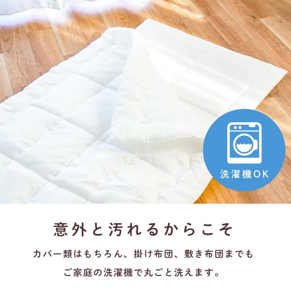 カバー類はもちろん、ふとん本体もお洗濯OK。さらに乾燥機にも対応!