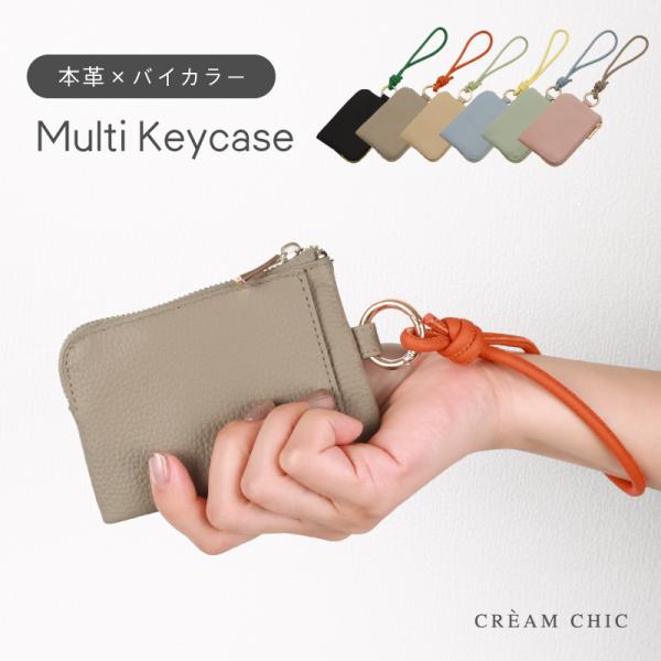 キーケース レディース 本革 メンズ ミニポーチ コンパクト スマートキー アクセサリー 革 バイカラーストラップ 小銭入れ おしゃれ かわいい 小物入れ カード