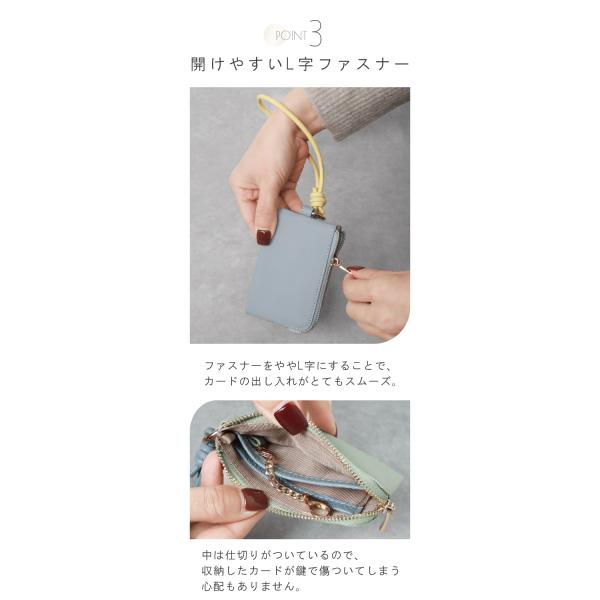 ●ファスナーをややL字にすることで、カードの出し入れがとてもスムーズ。