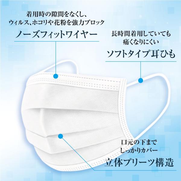 マスク 不織布 CE認証 50枚入り フィルター 大人用 男女兼用 立体型 三層構造 使い捨て ふつう レギュラー 白 ホワイト 予防 花粉 即納