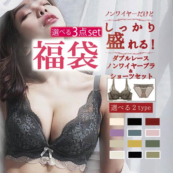 ブラジャー ショーツセット 【期間限定数量限定 】ナイトブラ 福袋 ノンワイヤー セット 20代 30代 40代 50代 育乳 谷間 盛れる 補正ブラ 脇肉 脇高