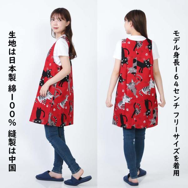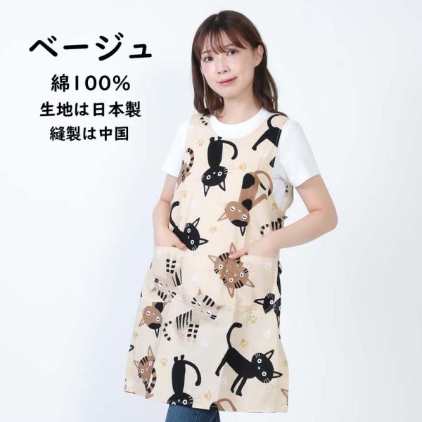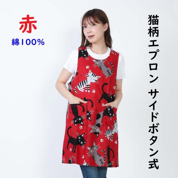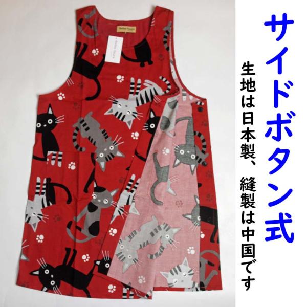 エプロン サイドボタン かわいい 猫柄 生地は日本製 保育士 メール便も可