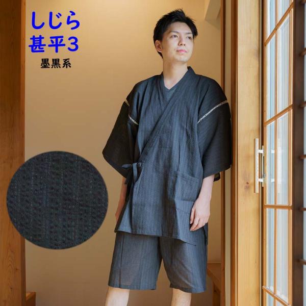 甚平 メンズ 麻混 しじら織り 男性 じんべい