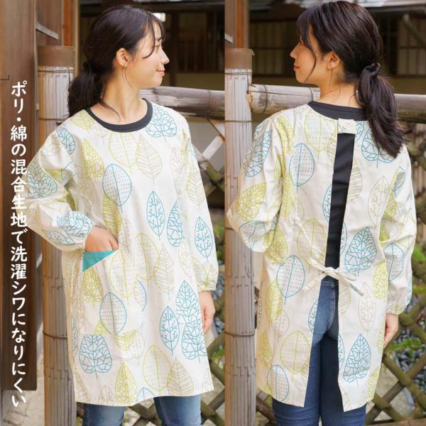 おしゃれな北欧柄の割烹着 かっぽうぎ フリーサイズ LLサイズ