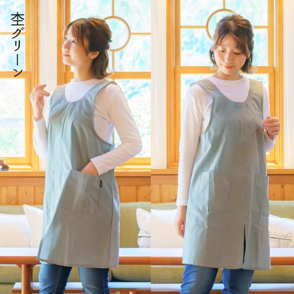 春色 エプロン かぶるだけ 前スリットで歩きやすい お尻が隠れる シンプル エプロン