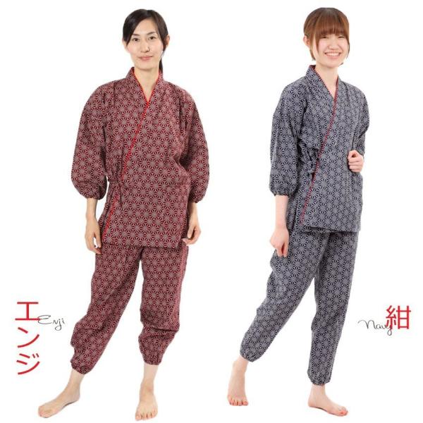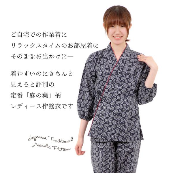 女性用作務衣 麻の葉柄 レディース さむえ