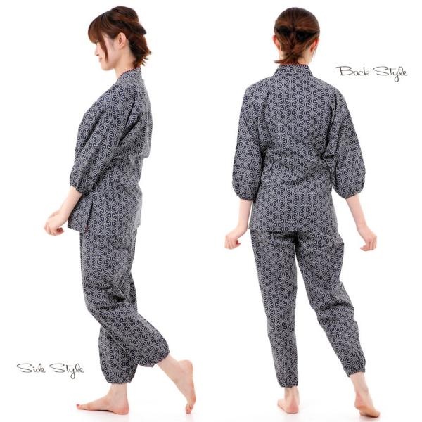作務衣 女性 春夏 薄地 さむえ 上下 麻の葉 女性 部屋着 麻の葉