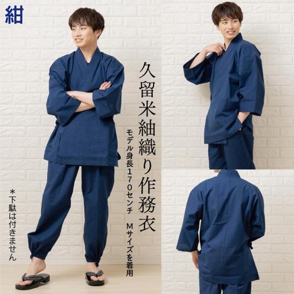 作務衣 メンズ きちんと和装式縫製 久留米織り 春秋向き さむえ 日本製
