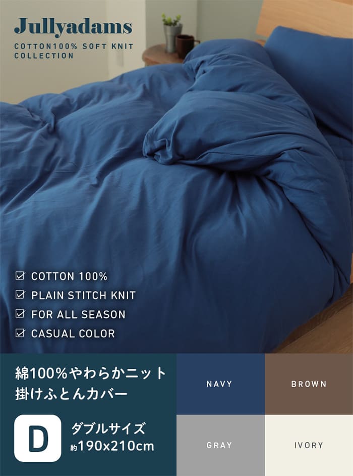掛け布団 カバー ダブル 綿100% やわらか天竺ニット