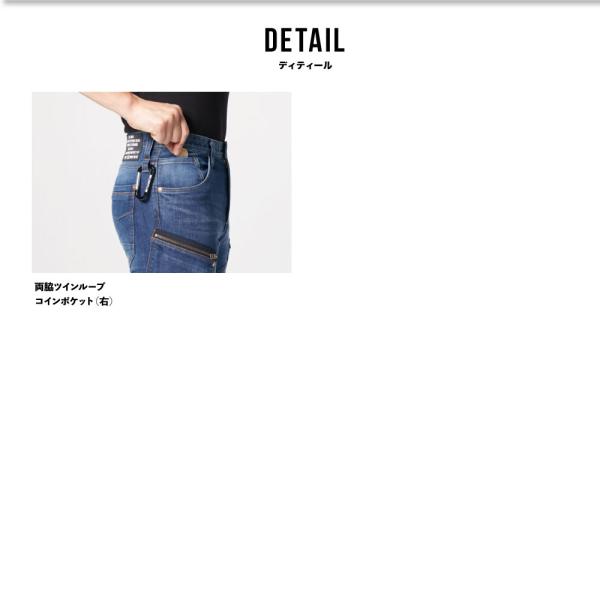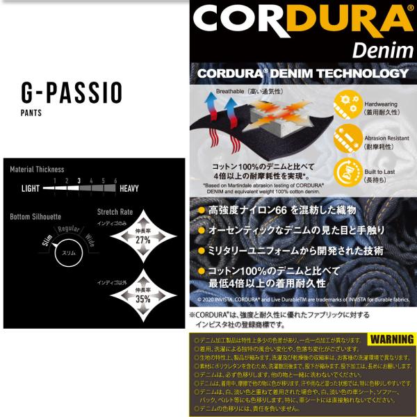 綿56%・ポリエステル29%・ナイロン(CORDURA)14%・ポリウレタン(LYCRA)1%(インディゴのみ)