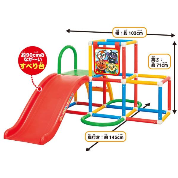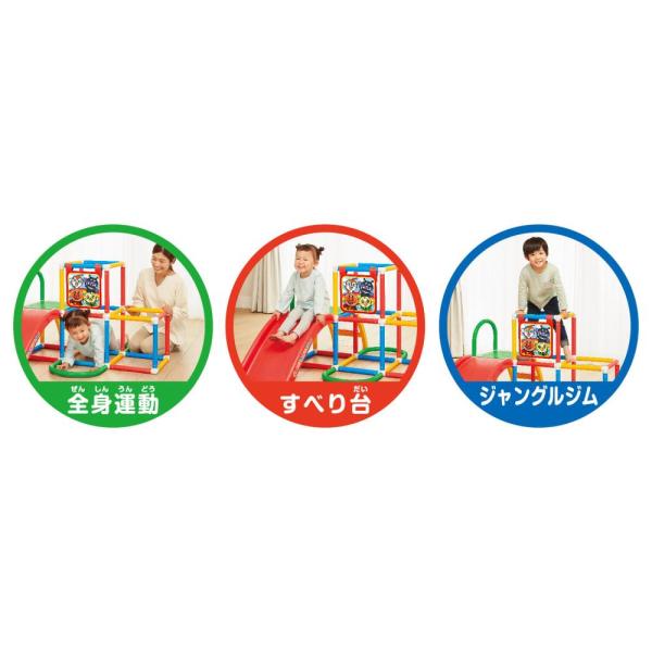 ●ジャングルジム、すべり台、全身運動の3WAYで長く遊べます。