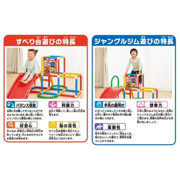 ●遊びながら判断力、想像力、好奇心、脳の活性、手先の器用さ、バランス感覚、柔軟性など7つの能力を伸ばせます。