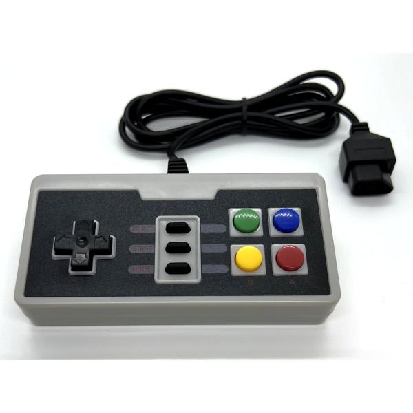 AV仕様のNEWファミコン本体にて使用可能な連射ジョイパッドです。通常のABボタンの上に、連射用のABボタンが搭載されております。海外ファミコン本体NESでも使用可能です。真ん中の [ MODE ]ボタンは [ A ]ボタン として機能します。