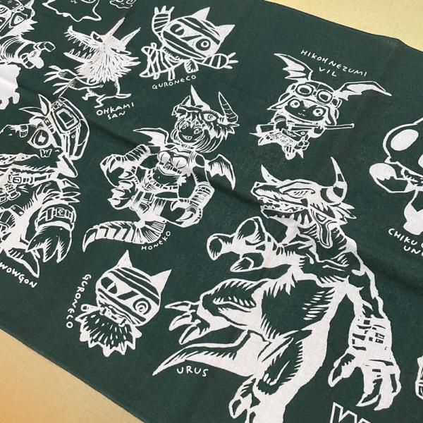 渡辺けんじ作品展「ワタナベノカイジュウ」のために制作された手拭いです。