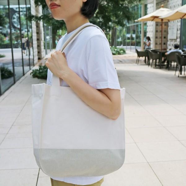 荷物が少ないときは、そこの丸みを生かした平面的な「丸バッグ」として。荷物が多いときは、マチを立体的に広げて直立できる「四角バッグ」として。