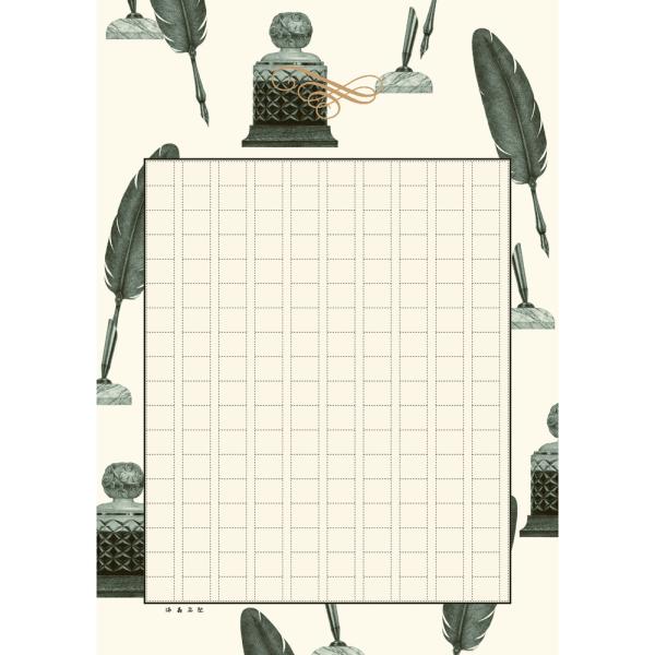 多くの方に愛用されている老舗の満寿屋が開発したクリーム紙を採用しました。クリーム紙はどのようなインクを用いても滲みや裏抜けしにくい、滑らかな書き味を楽しめる万年筆やボールペンに適した紙です。筆記具を愛する方のために「万年筆」、「羽ペン」、「ガラスペン」など3種類のデザインを製作しました。