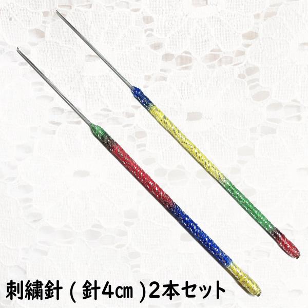 アリワーク 刺繍針 2本セット 針サイズ4cm レインボー柄 オートクチュール かぎ針 刺しゅう ビーズ刺繍用ニードル 手芸 用品 用具 ハリ