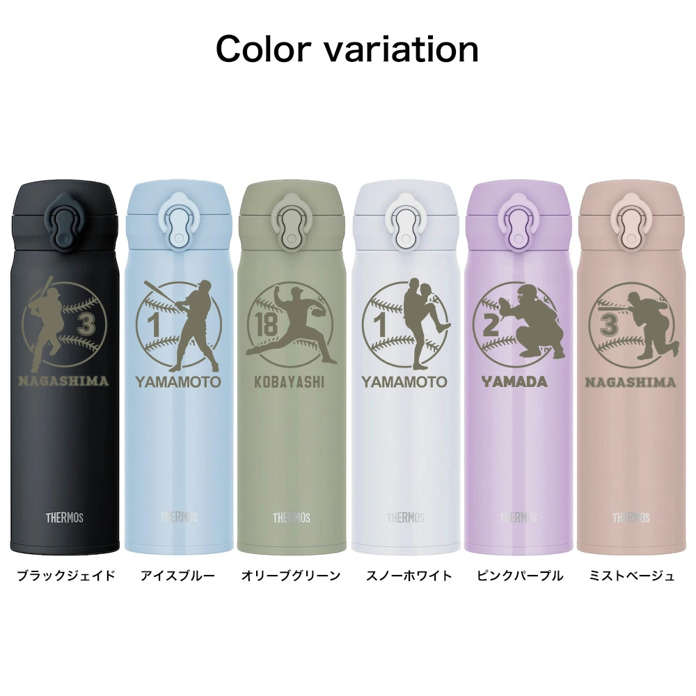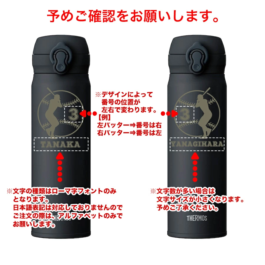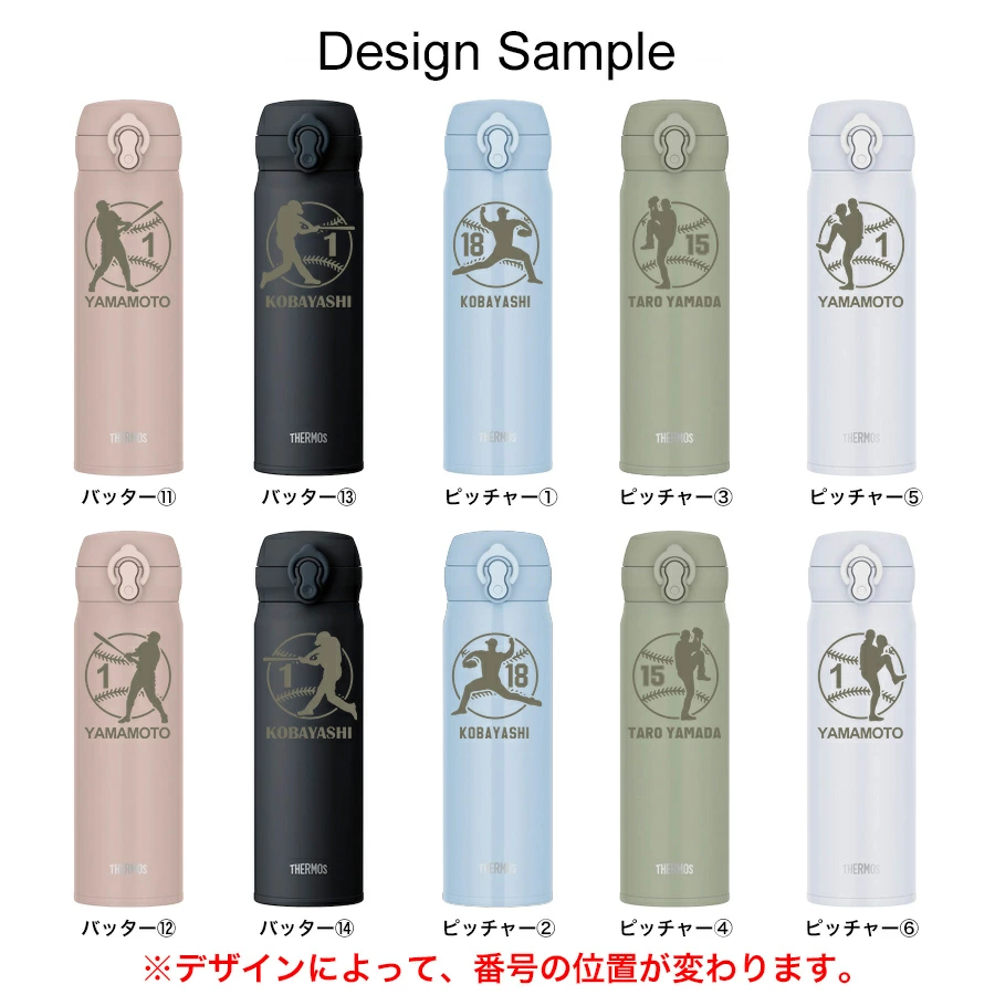 名入れ無料 サーモス水筒 500ml 野球デザイン 全29種 バッター・ピッチャー対応|THERMOS 保温保冷 ステンレスボトル 卒団 記念 ギフト オリジナル 彫刻
