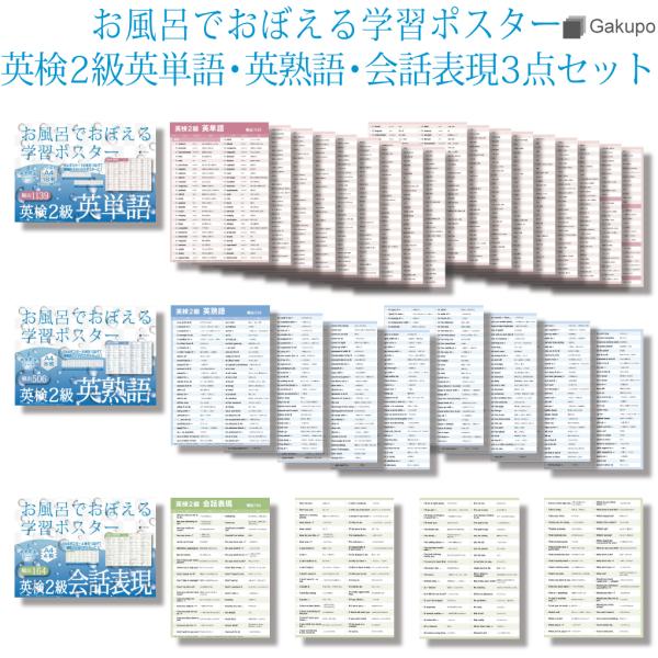Gakupo お風呂でおぼえる学習ポスター 英検2級 英単語・英熟語・会話表現3点セット