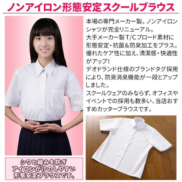 スクールシャツ 女子 半袖 2枚セット 形態安定 抗菌防臭 消臭タグ UV ノンアイロン 白 A体 B体 ブラウス 制服 ワイシャツ 高校生 中学生 スクール専門メーカー