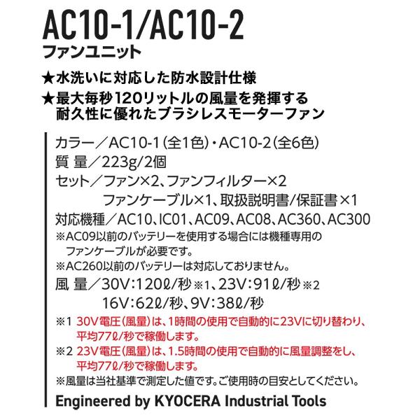 と最大毎秒120リットルの風量を発揮するAC10-1/AC10-2