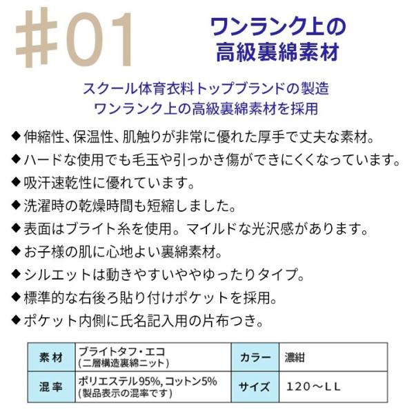素材は国産。学校体操服専用の丈夫で柔らかな裏綿