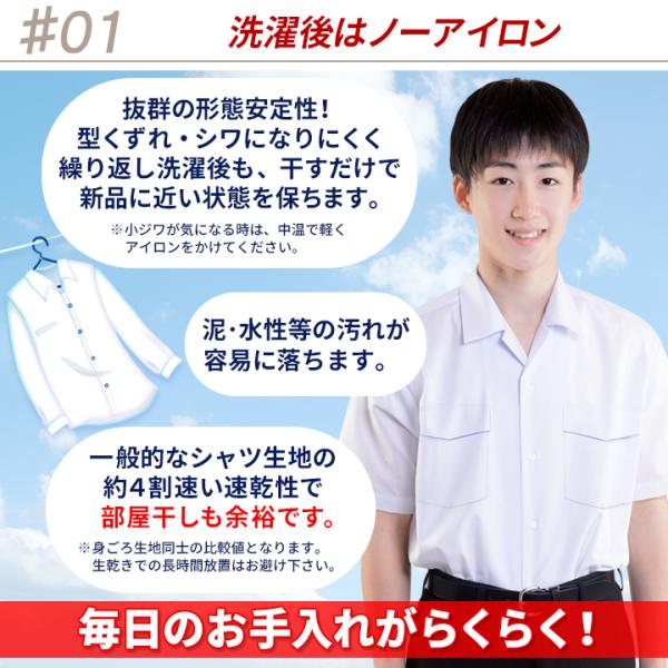 学生服 開襟シャツ 形態安定 ノンアイロン