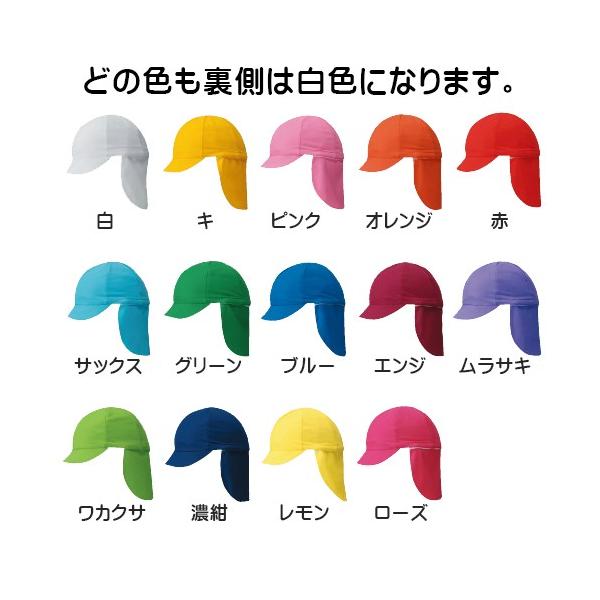裏地はどのカラーも白色です。通常スタイルの赤白帽としても使えます。