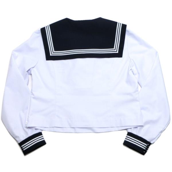 立体裁断のプリンセスラインが美しい、かぶり式の長袖合服セーラー服です。